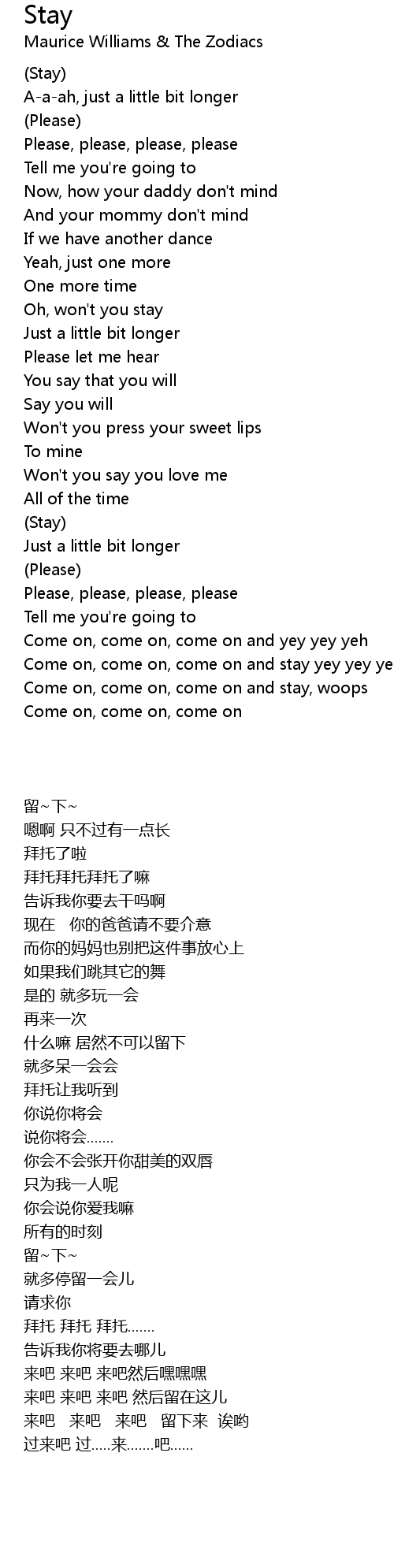 Oh, won't you stay |