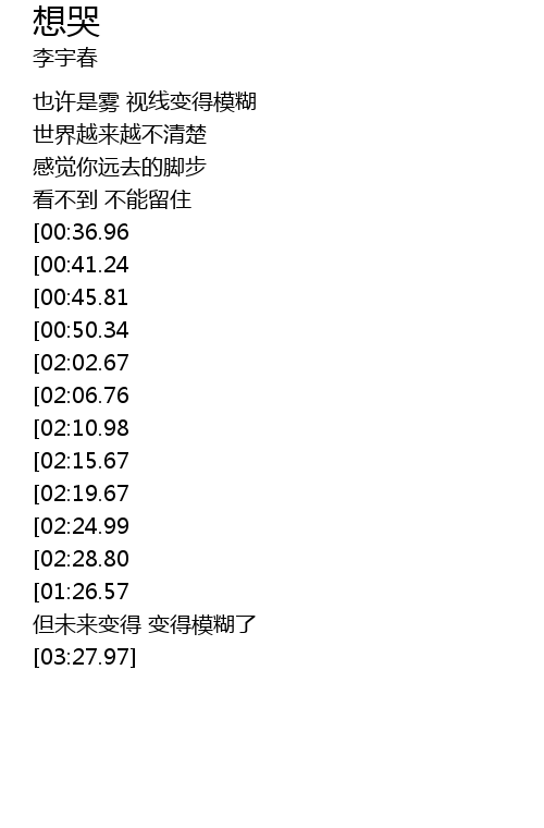 | [01:56.70][00:50.34] | 觉得有些想哭 |