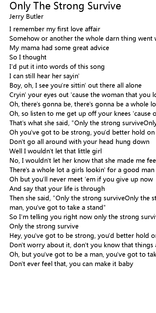 Then she said, "Only the strong surviveOnly the strong surviveYou've got to be a man, you've got to take a stand" |