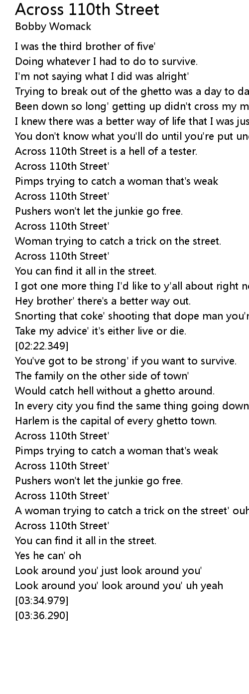 | [01:09.490] | Across 110th Street is a hell of a tester. |