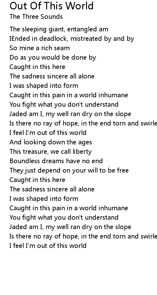 I feel I'm out of this world |