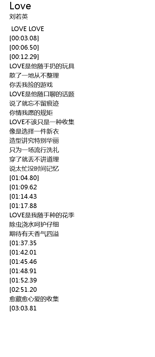 | [03:07.49][03:03.81][02:01.55] | LOVE…LOVE…LOVE… |