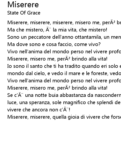 | Miserere, miserere, quella gioia di vivere che forse ancora non c'. |