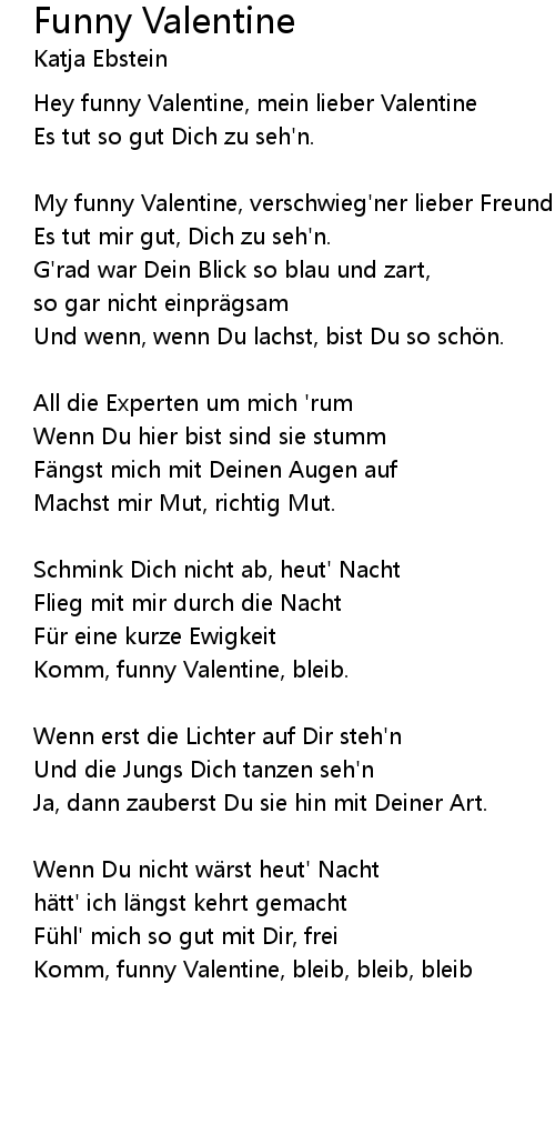 | Komm, funny Valentine, bleib, bleib, bleib |
