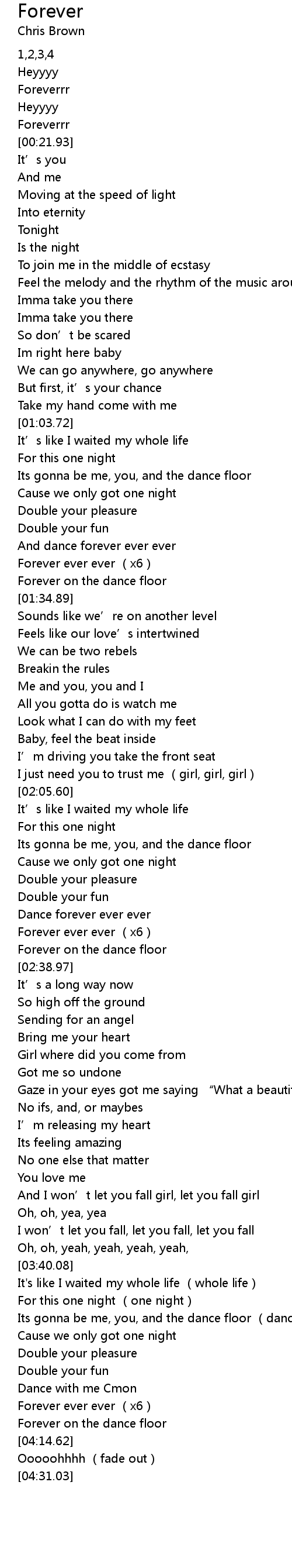 | [03:59.25] | Forever ever ever x6 |