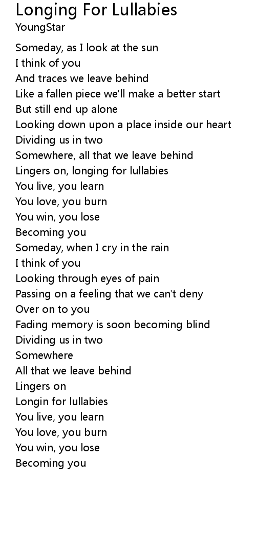 Lingers on, longing for lullabies |