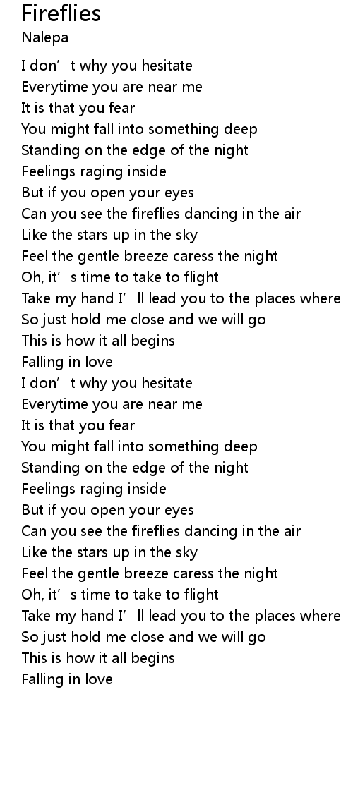 | [01:56.970] | Can you see the fireflies dancing in the air |