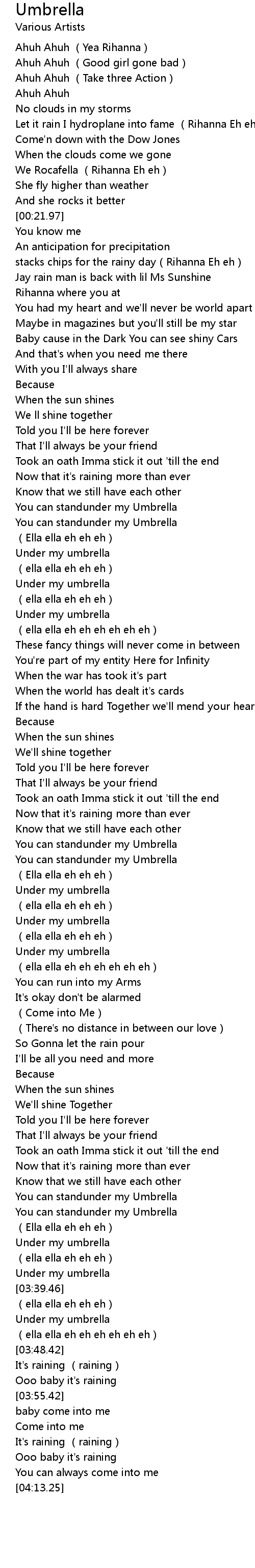 | [02:21.51] | You can standunder my Umbrella |