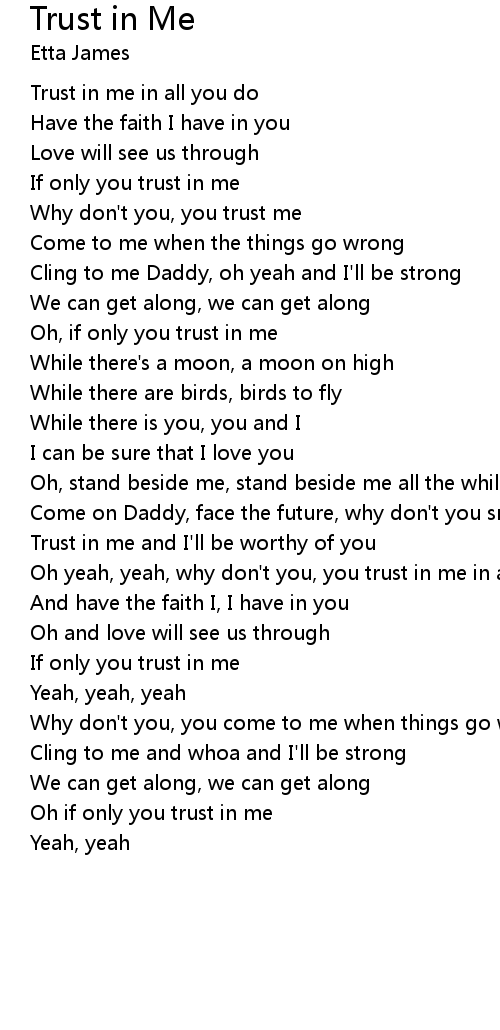 Oh yeah, yeah, why don't you, you trust in me in all you do |