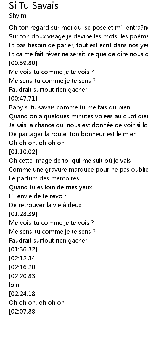 | [00:43.12] | Me sens-tu comme je te sens ? |