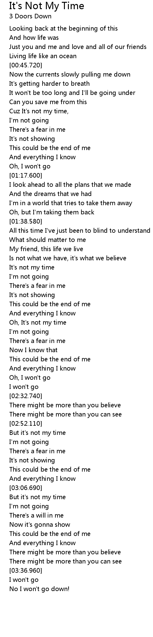 It's not my time |
