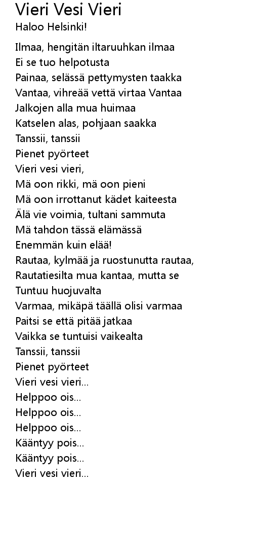 | Ilmaa, hengitän iltaruuhkan ilmaa | |