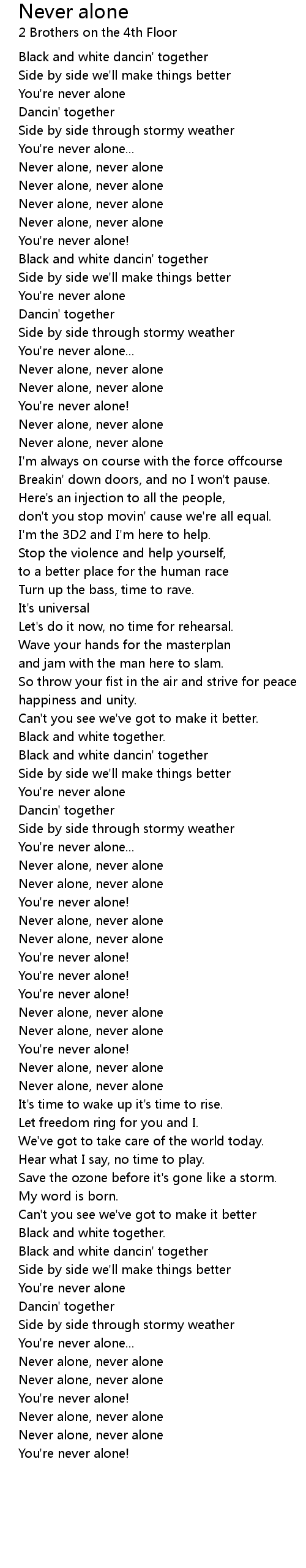 Never alone, never alone |