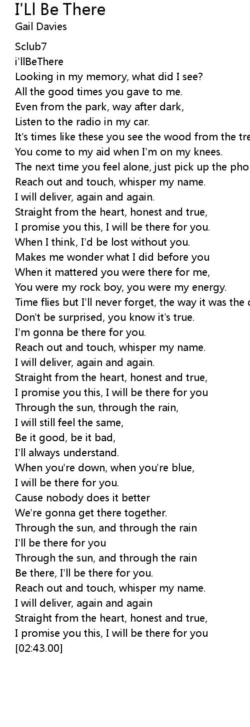 Be there, I'll be there for you. |