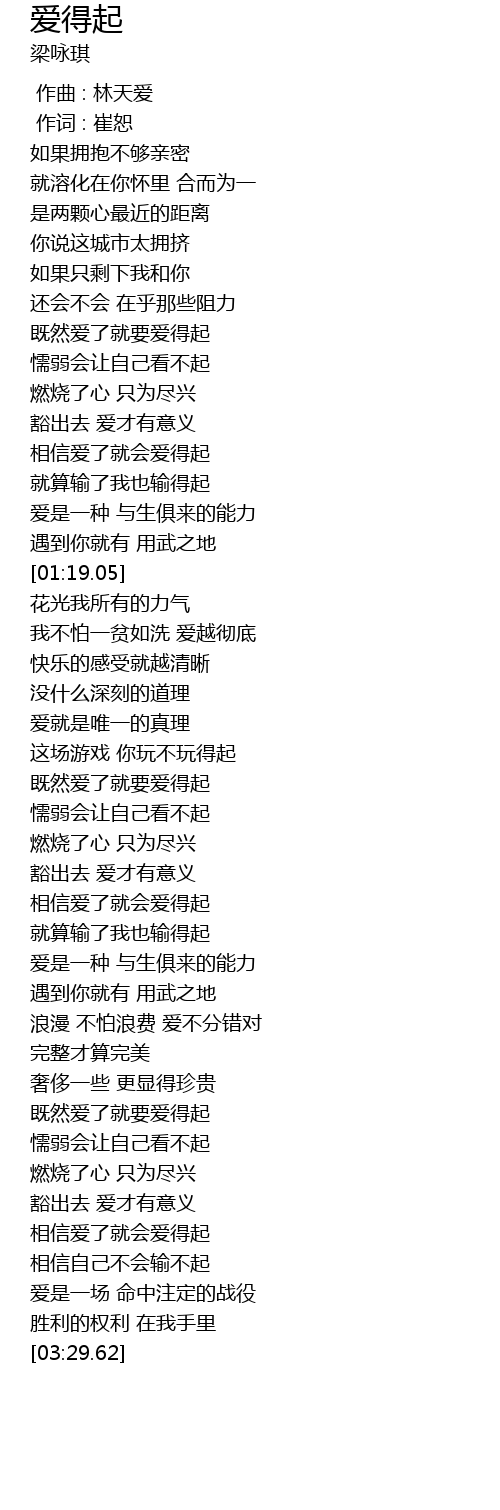 | [02:54.74] | jì rán ài le jiù yào ài dé qǐ |