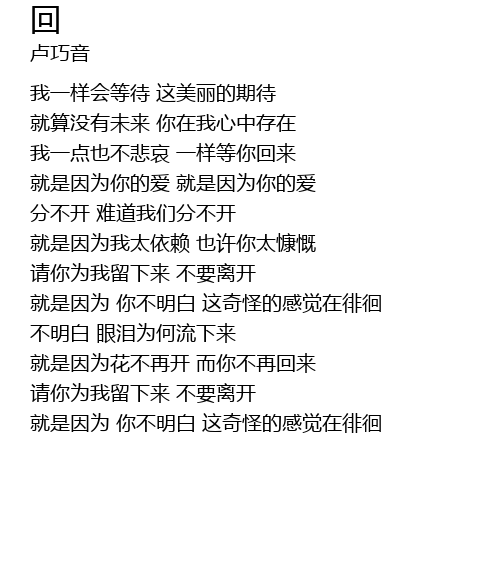 | [01:34.95] | 请你为我留下来 不要离开 |