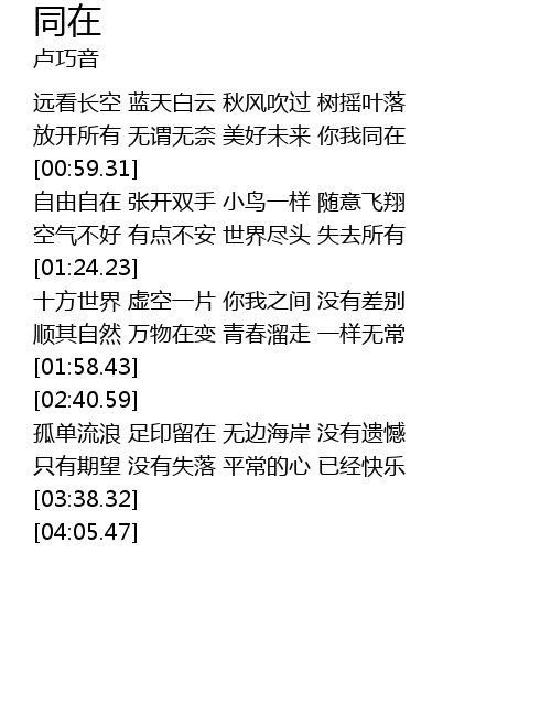 | [01:07.03] | zi you zi zai zhang kai shuang shou xiao niao yi yang sui yi fei xiang |