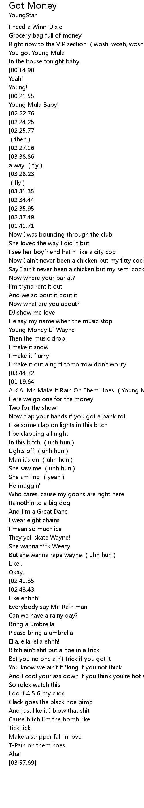 | [01:21.86] | A. K. A. Mr. Make It Rain On Them Hoes Young Money |