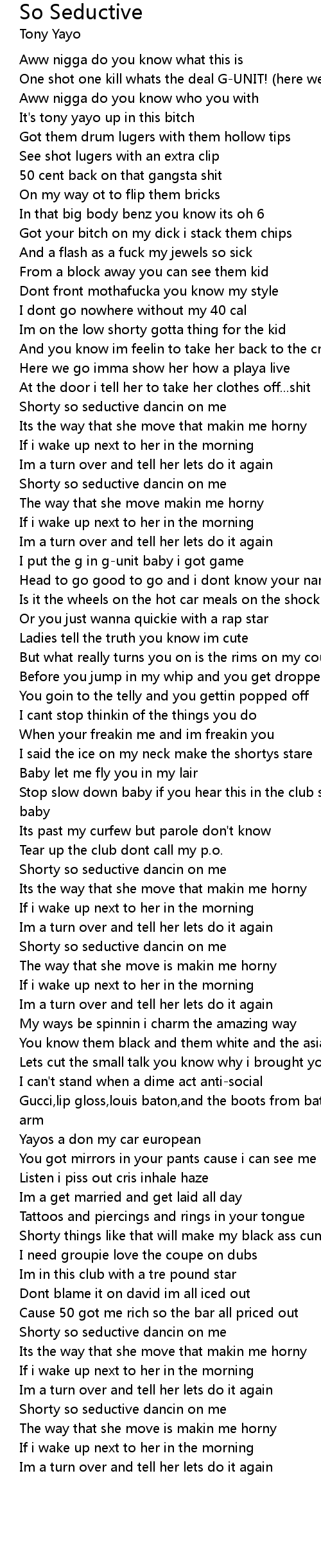Stop slow down baby if you hear this in the club shake and go down baby |