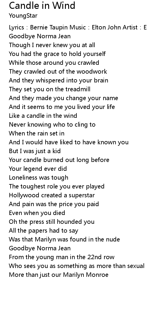 | Song | Candle in Wind |