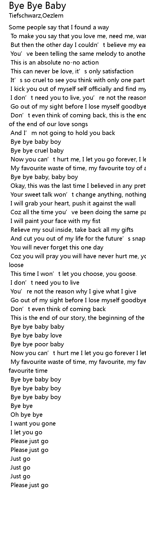 | Don' t even think of coming back, this is the end of our story, the beginning of the end of our love songs | |