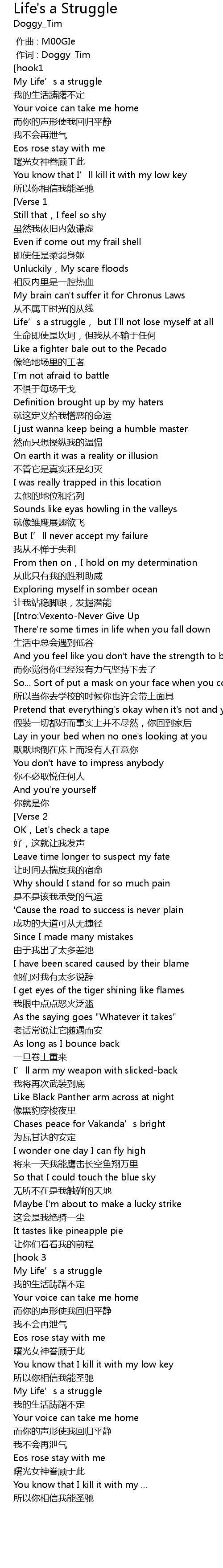 | [02:17.936] | My Life' s a struggle |