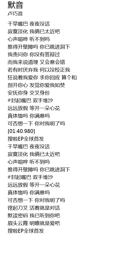 | [02:56.090] | 默读密码 我已听到你吧 |
