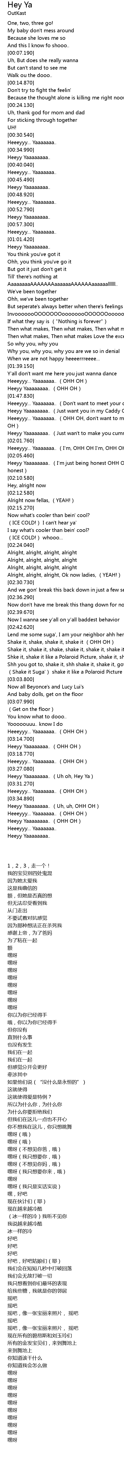 | [03:28.390] | Heeyy Yaaaaaaaa.. (Uh oh, Hey Ya) |