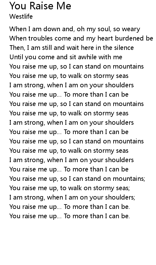 | [03:23.63] | You raise me up To more than I can be. |
