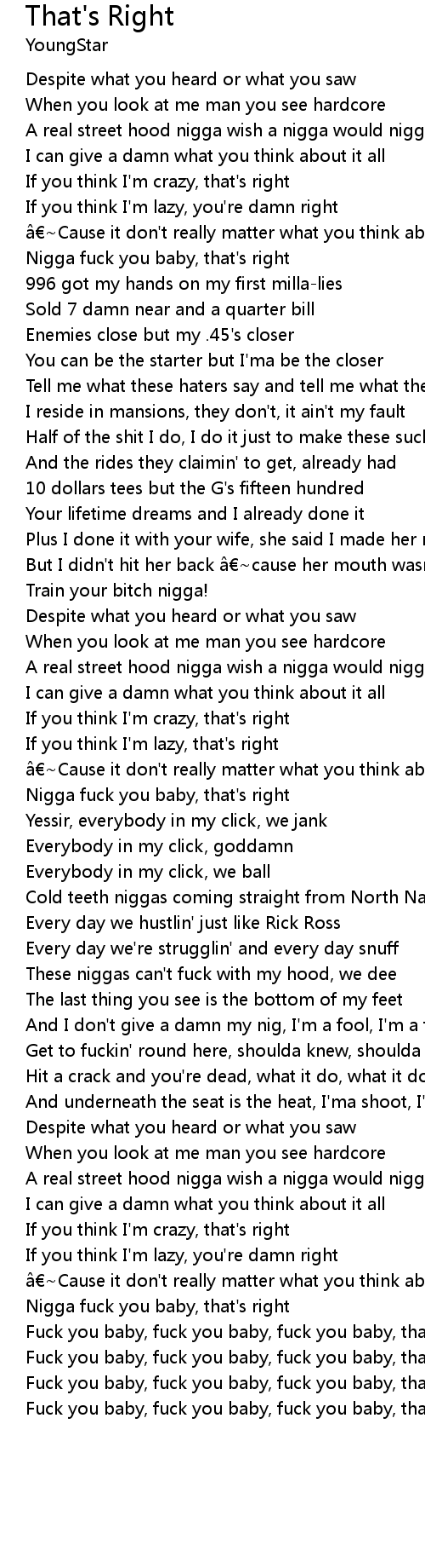 | Fuck you baby, fuck you baby, fuck you baby, that' s right |