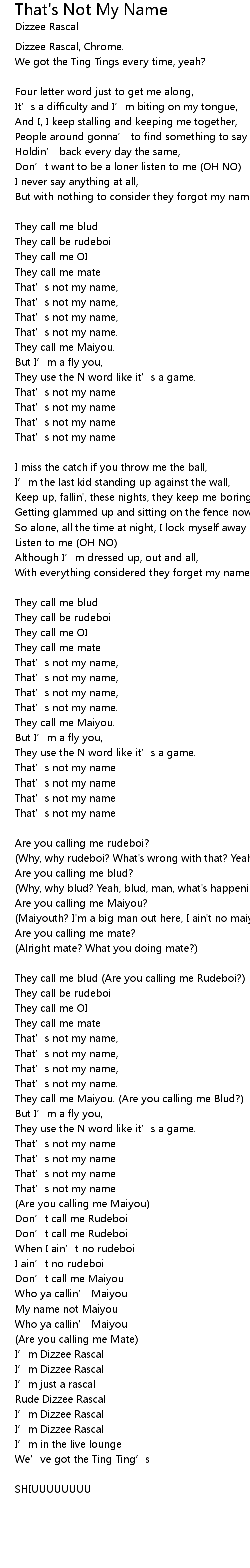 | Song | That's Not My Name |