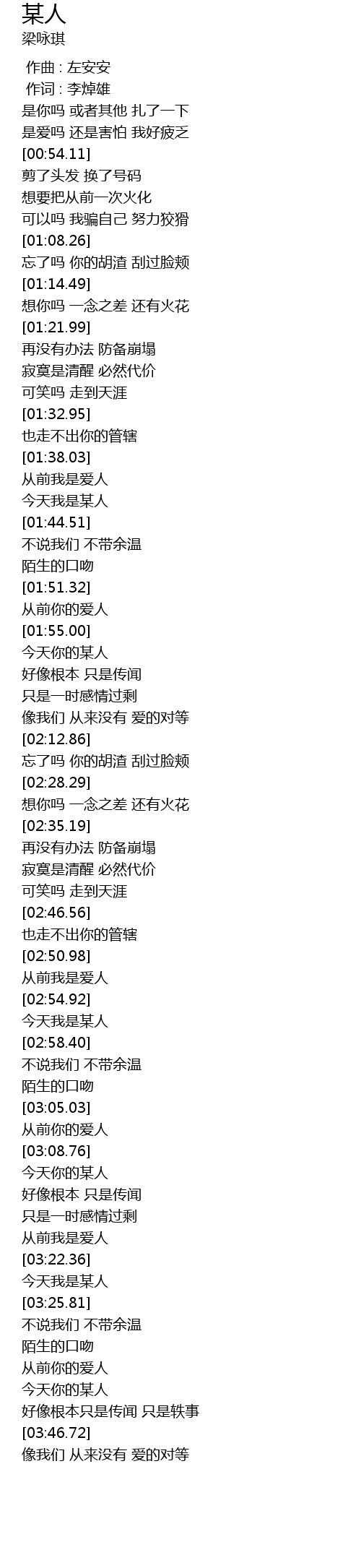| [00:00.00] | 作曲 : 左安安 |