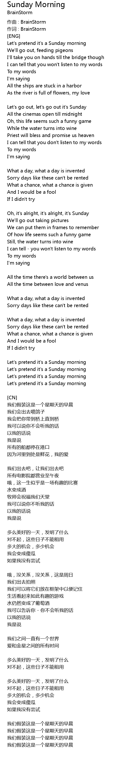 | Oh, it' s alright, it' s alright, it' s Sunday | |