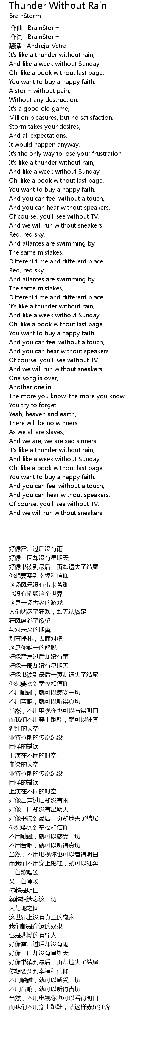 | [03:37.95] | It' s like a thunder without rain, |