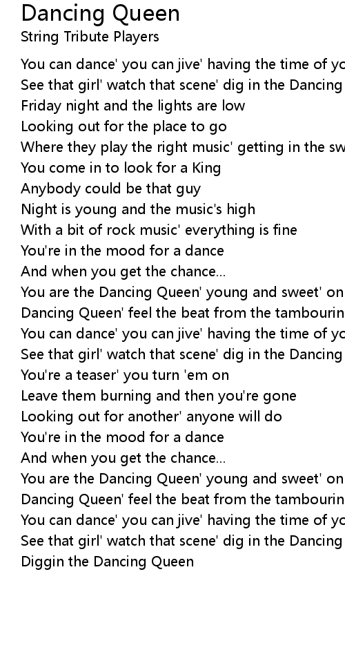 You are the Dancing Queen' young and sweet' only seventeen |