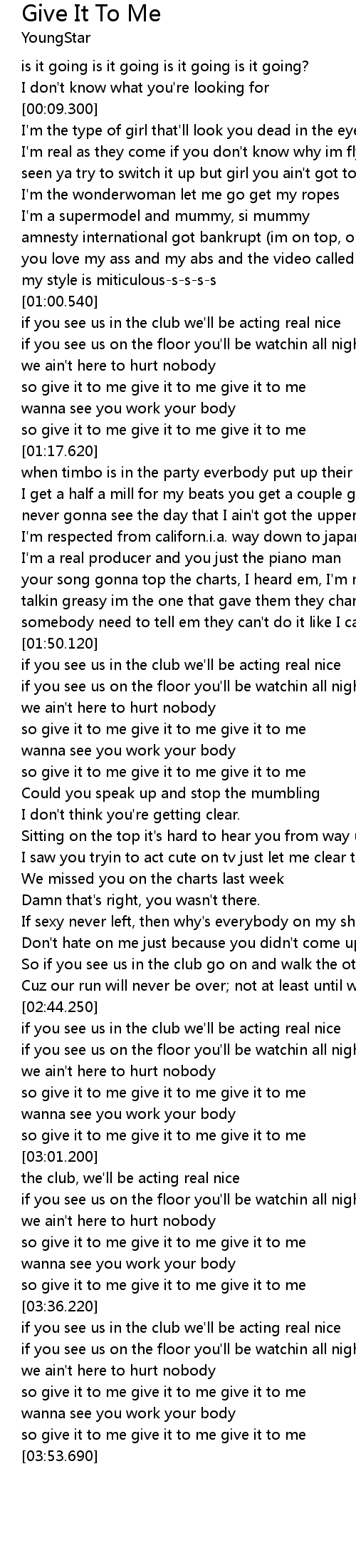 | [03:36.970] | if you see us in the club we' ll be acting real nice |