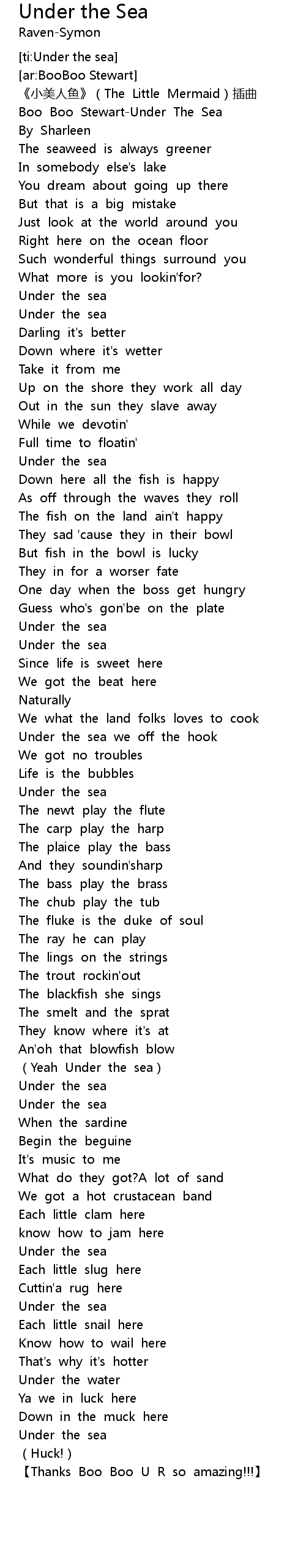 | [00:05.285] | Boo Boo StewartUnder The Sea |