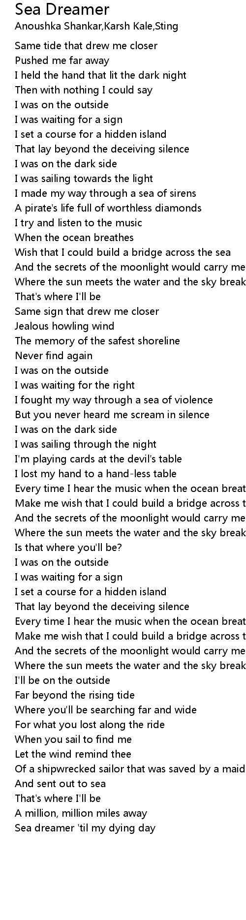 Sea dreamer 'til my dying day |