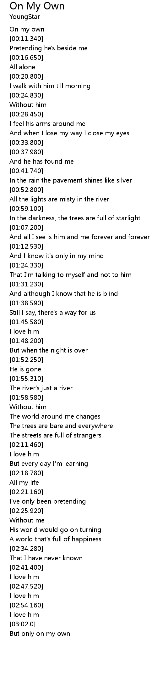 | [03:05.140] | But only on my own |