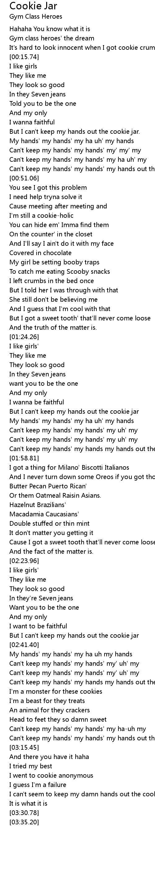 Can't keep my hands' my hands my hands out the cookie jar. |