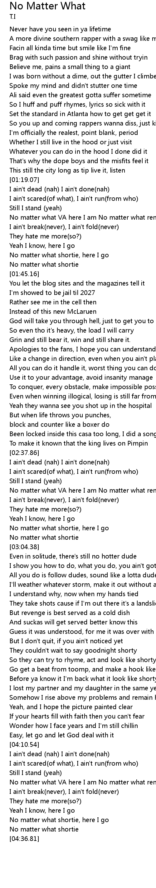 I ain't scared(of what), I ain't run(from who) |