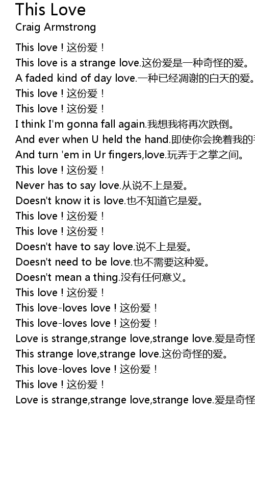 | Love is strange, strange love, strange love. ài shì qí guài de, qí guài de ài! |