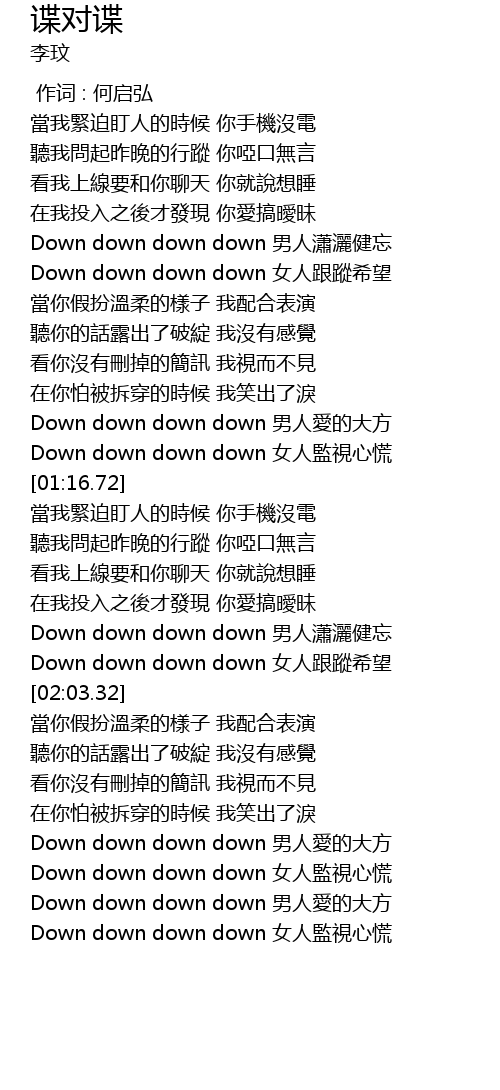 | [02:43.90] | Down down down down 女人監視心慌 |