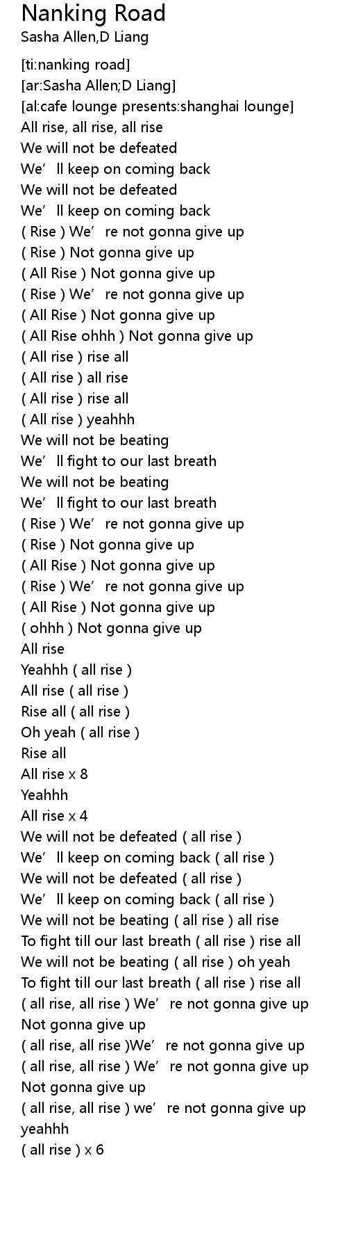 | [00:45.43] | All Rise ohhh Not gonna give up |