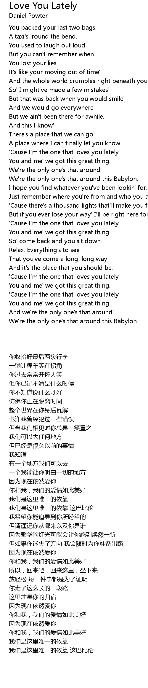 'Cause I'm the one that loves you lately. |