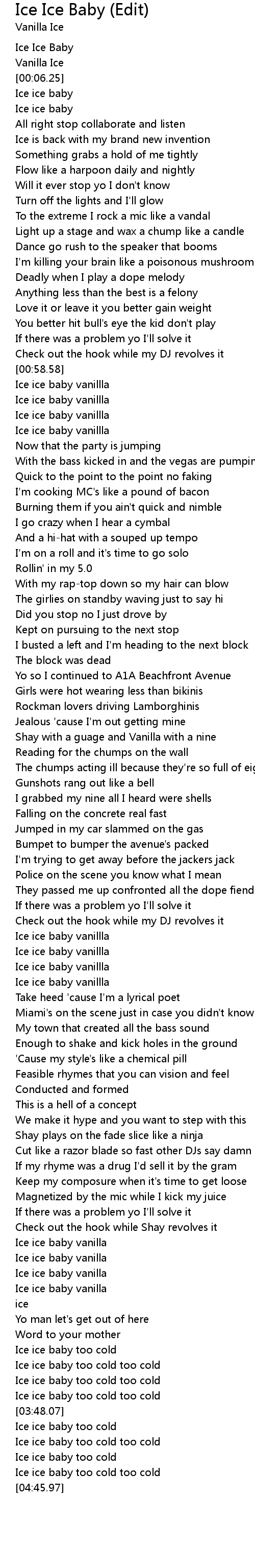 Ice ice baby vanillla |