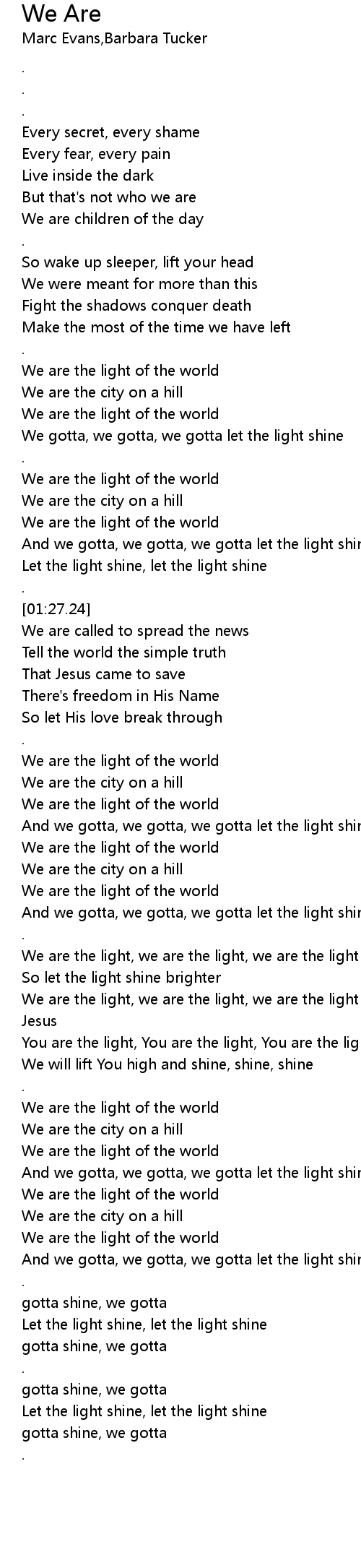 We are the light, we are the light, we are the light |