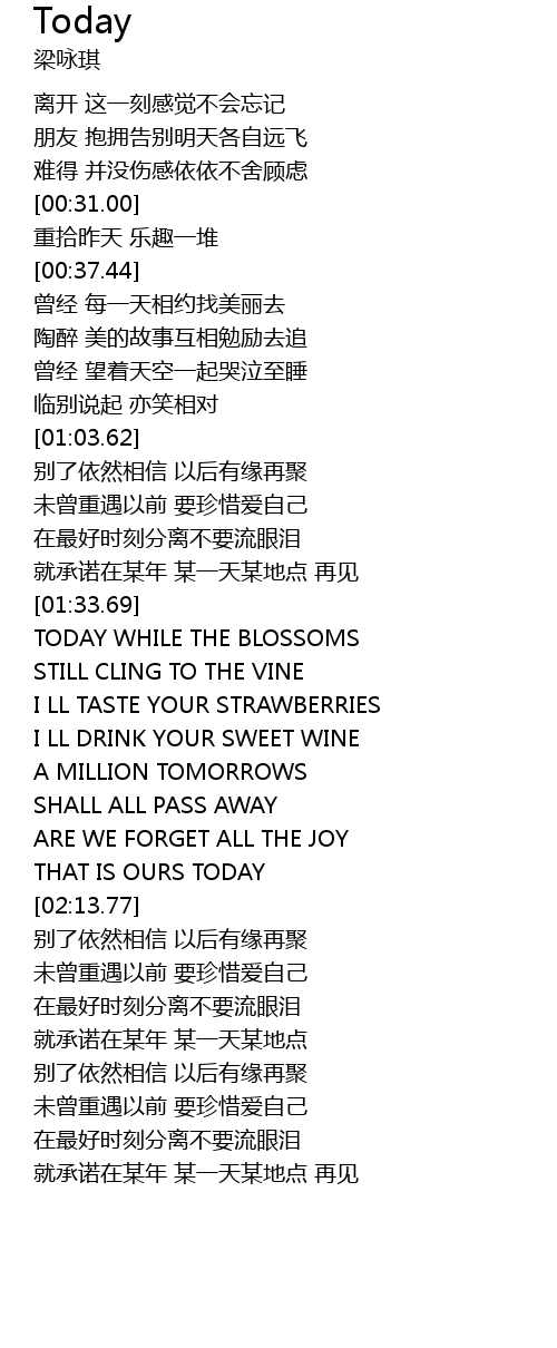 | [01:46.58] | TODAY WHILE THE BLOSSOMS |