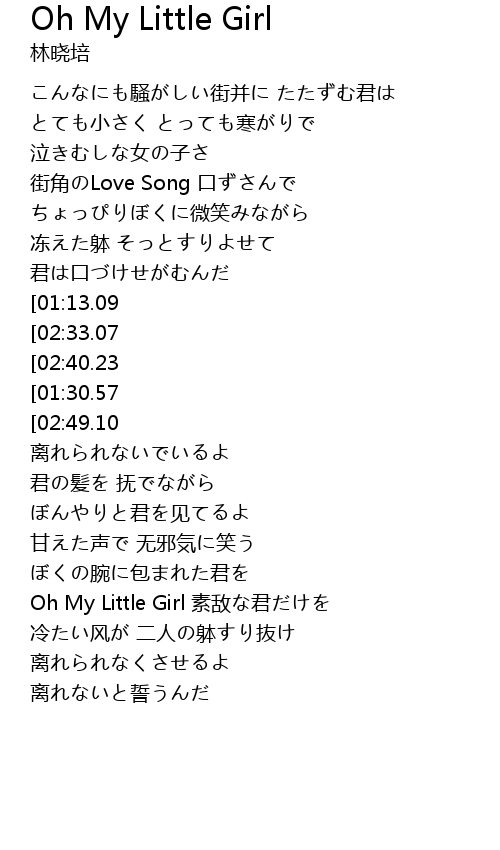 | [03:30.91][02:33.07][01:20.30] | Oh My Little Girl ài |