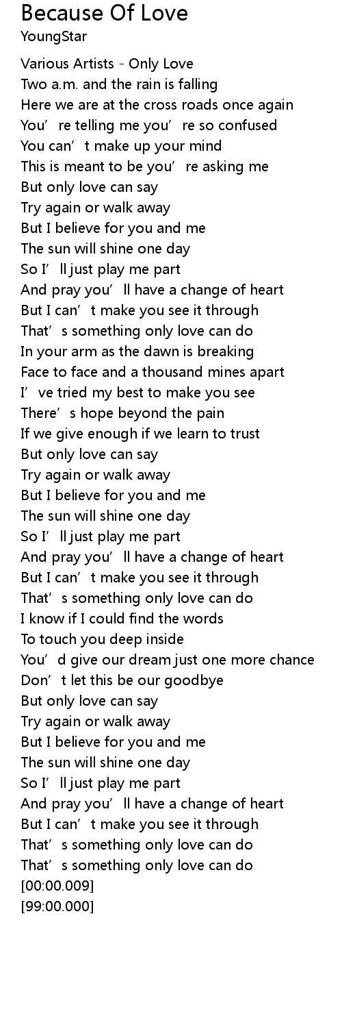 | [02:25.94] | That’s something only love can do |